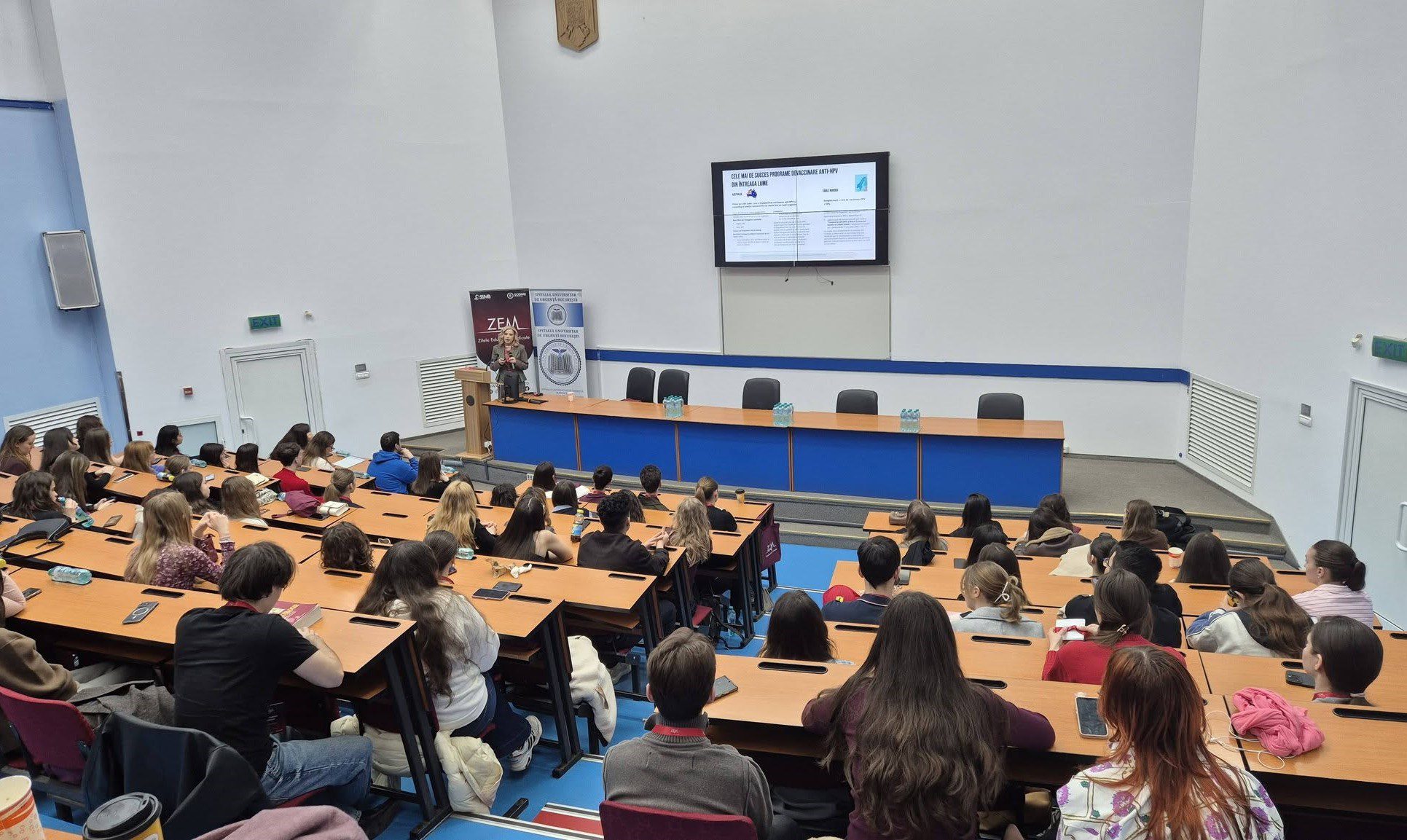 Aproximativ 200 de studenți au participat, duminică, la prezentarea „Dincolo de Vaccin și Test: Tot ce Trebuie să Știi Despre HPV”, susținută de prof. univ. dr. Monica Cîrstoiu, șefa Clinicii de Obstetrică-Ginecologie a Spitalului Universitar de Urgenţă Bucureşti.