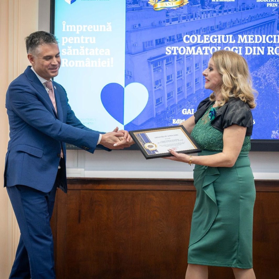 Distincția a fost acordată prin președintele CMSR, Florin Lăzărescu, ca semn al recunoașterii parteneriatului instituțional și al eforturilor dedicate integrării sănătății orale în politicile publice de sănătate.