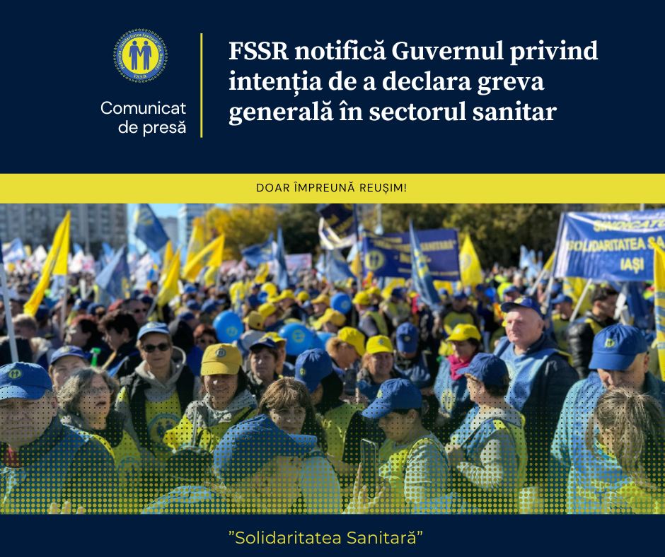 FSSR atrage atenția că impactul unei astfel de greve ar fi resimțit de întreg sistemul sanitar și speră că Guvernul va alege calea dialogului real, înțelegând că angajații din sănătate nu pot fi tratați ca „variabila de ajustare bugetară” a politicilor economice, transmite federația.