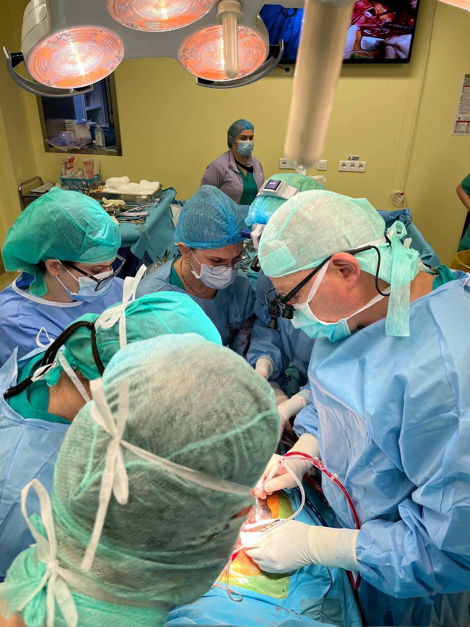 Circulația extracorporală a fost asigurată de asist. perfuzionist Cristina Condrache, asist. perf. Giuliana Chirilă, asistați de asist. perf. Victor Pavel. Ne-au ajutat în intervenție asist. instrumentiste Mihaela Bușilă și Gabriela Smeu, coordonate de asist. șef Florența Bibiloiu.
