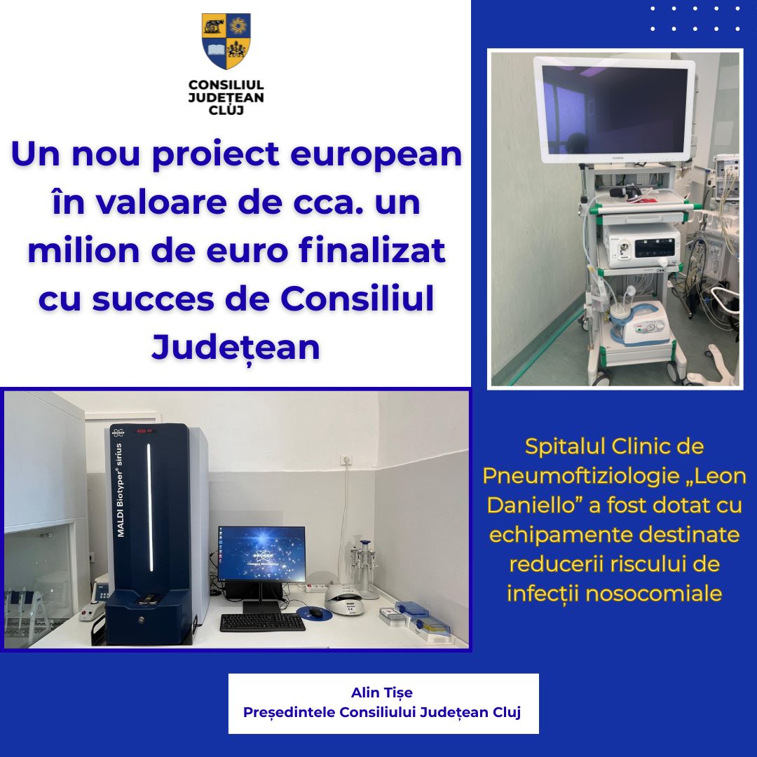 Spitalul Clinic de Pneumoftiziologie „Leon Daniello” din Cluj a fost dotat cu echipamente moderne pentru reducerea riscului de infecții nosocomiale, printr-un proiect european finalizat cu succes de Consiliul Județean Cluj.