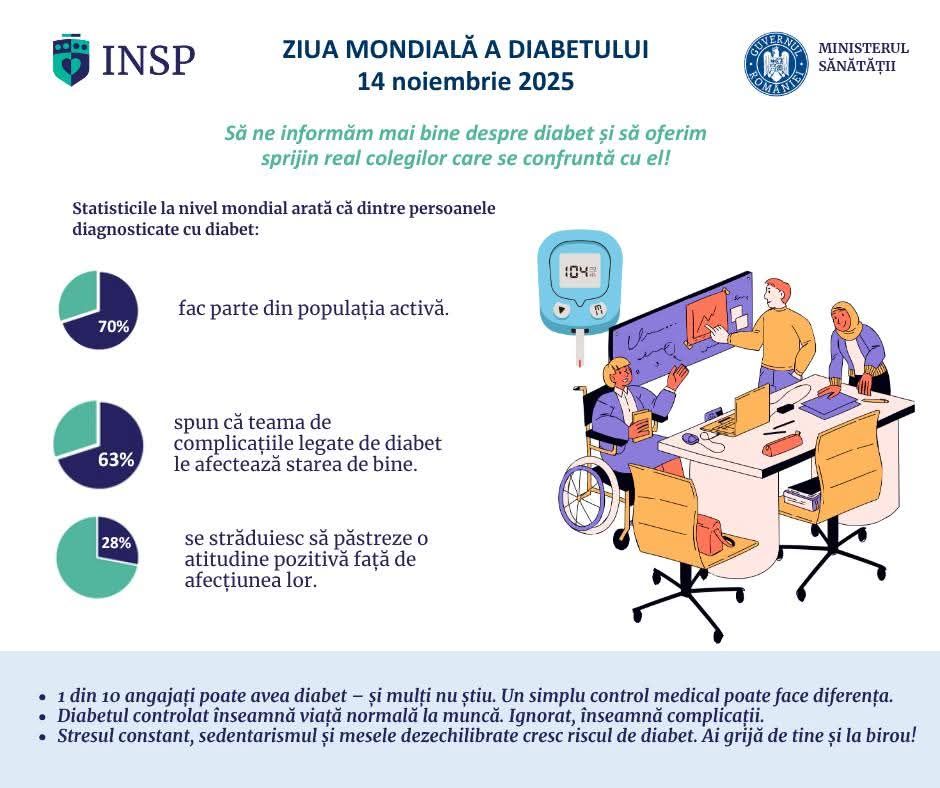 Tema Zilei Mondiale a Diabetului din acest an, „Diabetul la locul de muncă”, atrage atenția asupra impactului pe care boala îl poate avea asupra vieții profesionale, sănătății mintale și echilibrului personal.