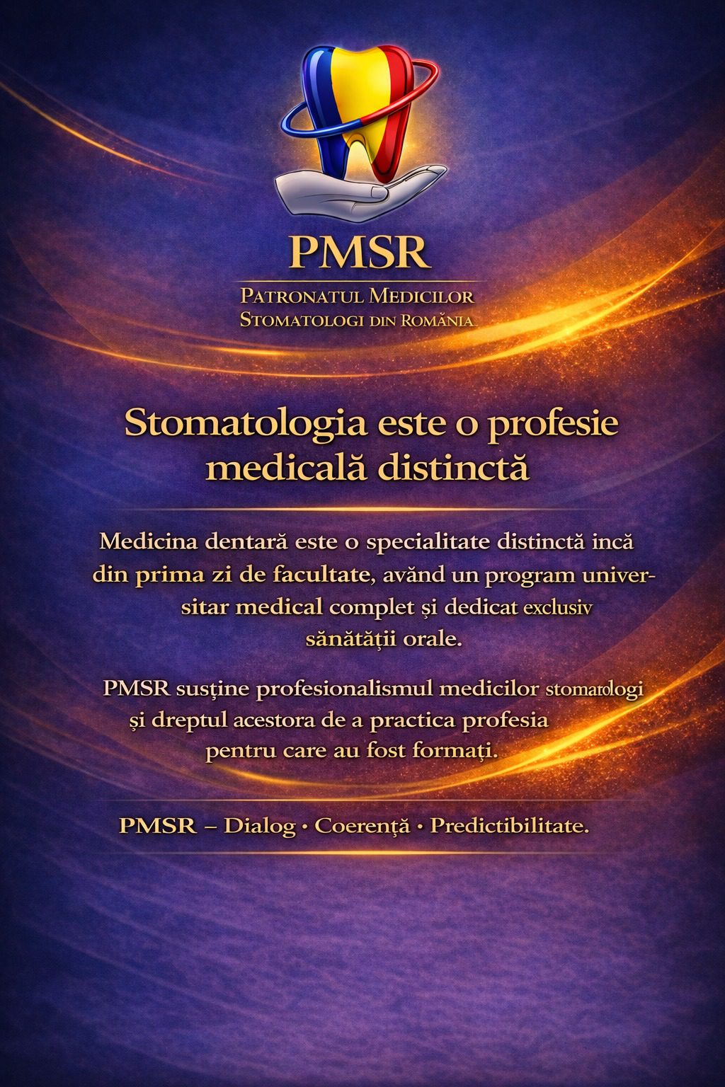„Medicina dentară reprezintă o specialitate medicală în sine încă din momentul începerii formării universitare, iar dezvoltarea profesională ulterioară are rolul de perfecționare și aprofundare a unor domenii specifice ale practicii stomatologice”, afirmă PMSR.